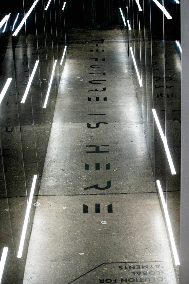 The concept development for the visual theme for The Future is Here was inspired by Masamune Shirow's manga and anime series Ghost in the Shell. It takes place in a (post)cyberpunk version of Earth in the near future. I wanted to articulate Swell and Ripple as a pioneer in showing the vision for what the future holds, much like Shirow imagined in his manga. I put together a mood board with images that looked futuristic and picked colors from the imagery. Please see more information about the logo development here.