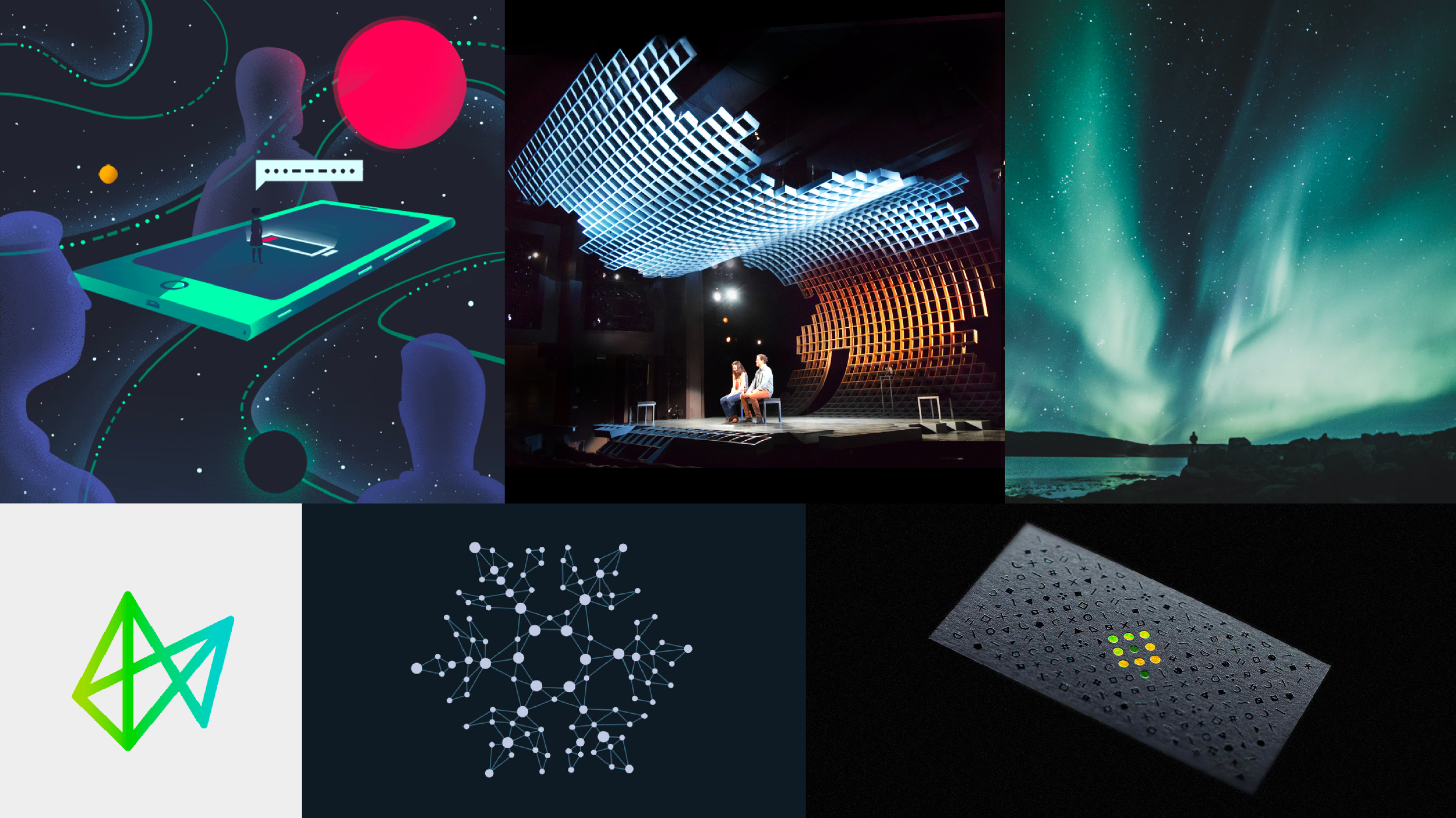 After the concepting phase, I put together a mood board with images that represents constellations and connections. For colors, I was inspired by the blues and greens of the aurora borealis you see in the Earth's sky. For the design, I was inspired by the organic shape of the milky way and dots that represent stars.